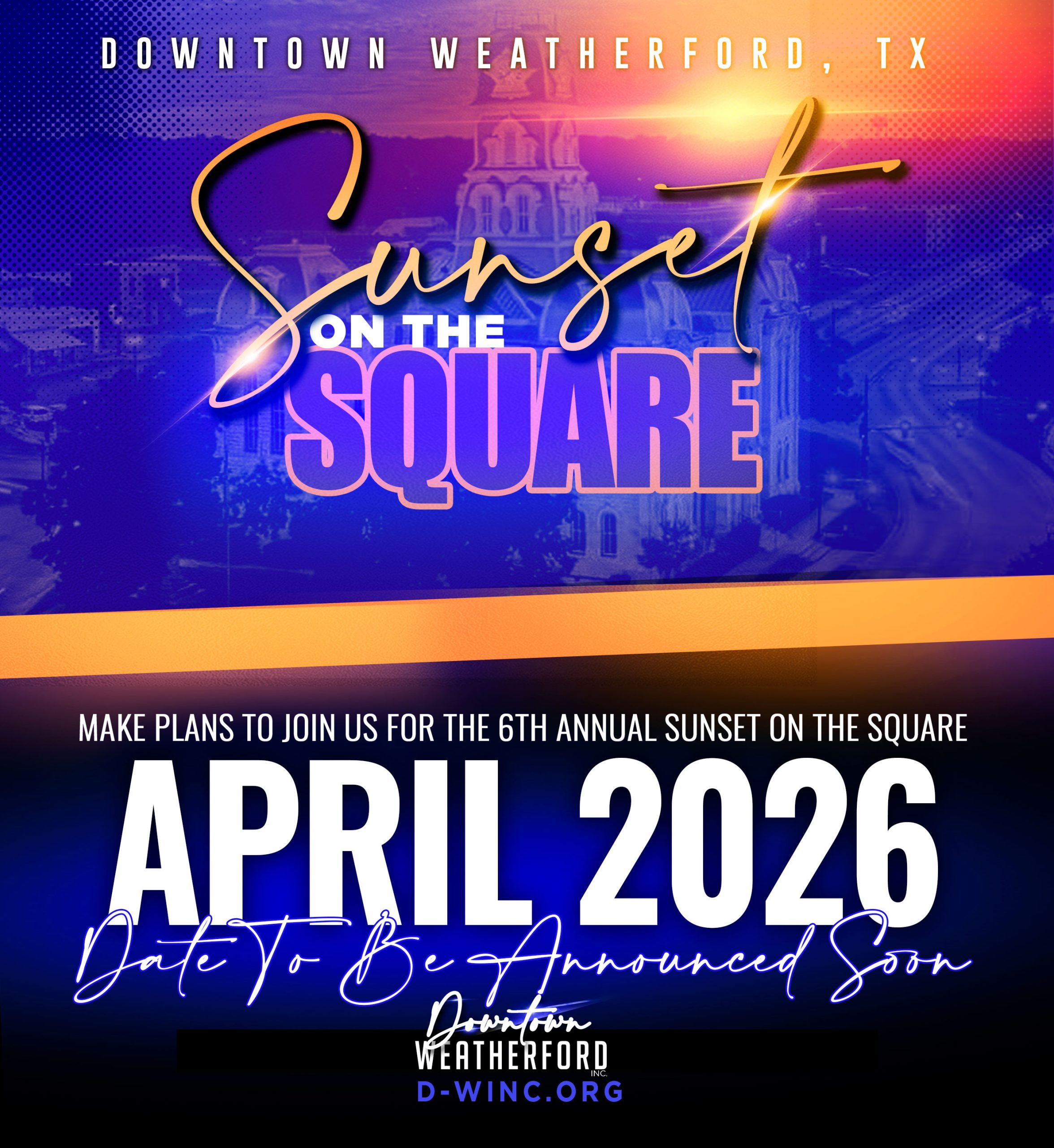 Join Downtown Weatherford, Inc. for the highly anticipated 6th annual Sunset on the Square.