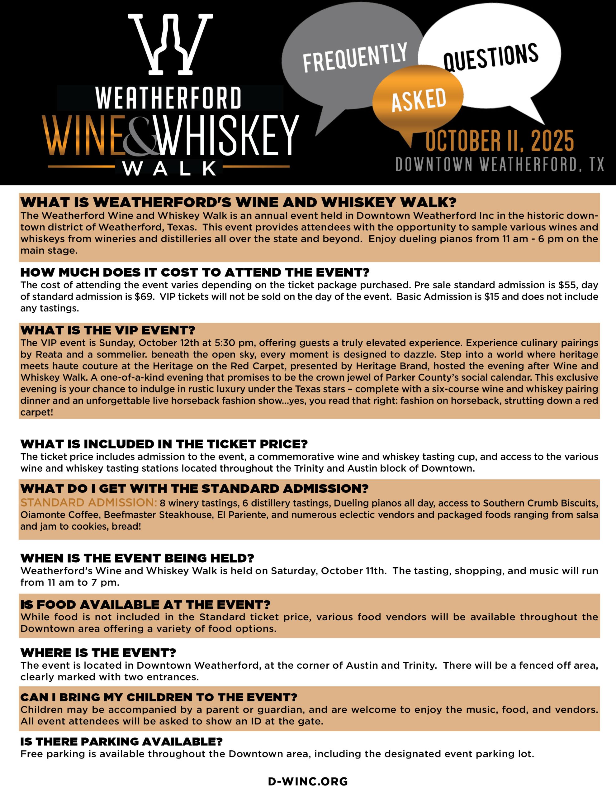 Get ready for an unforgettable day in Downtown Weatherford at the 5th Annual Wine & Whiskey Walk where fine wine, smooth whiskey, live music, and local charm collide in perfect harmony!
